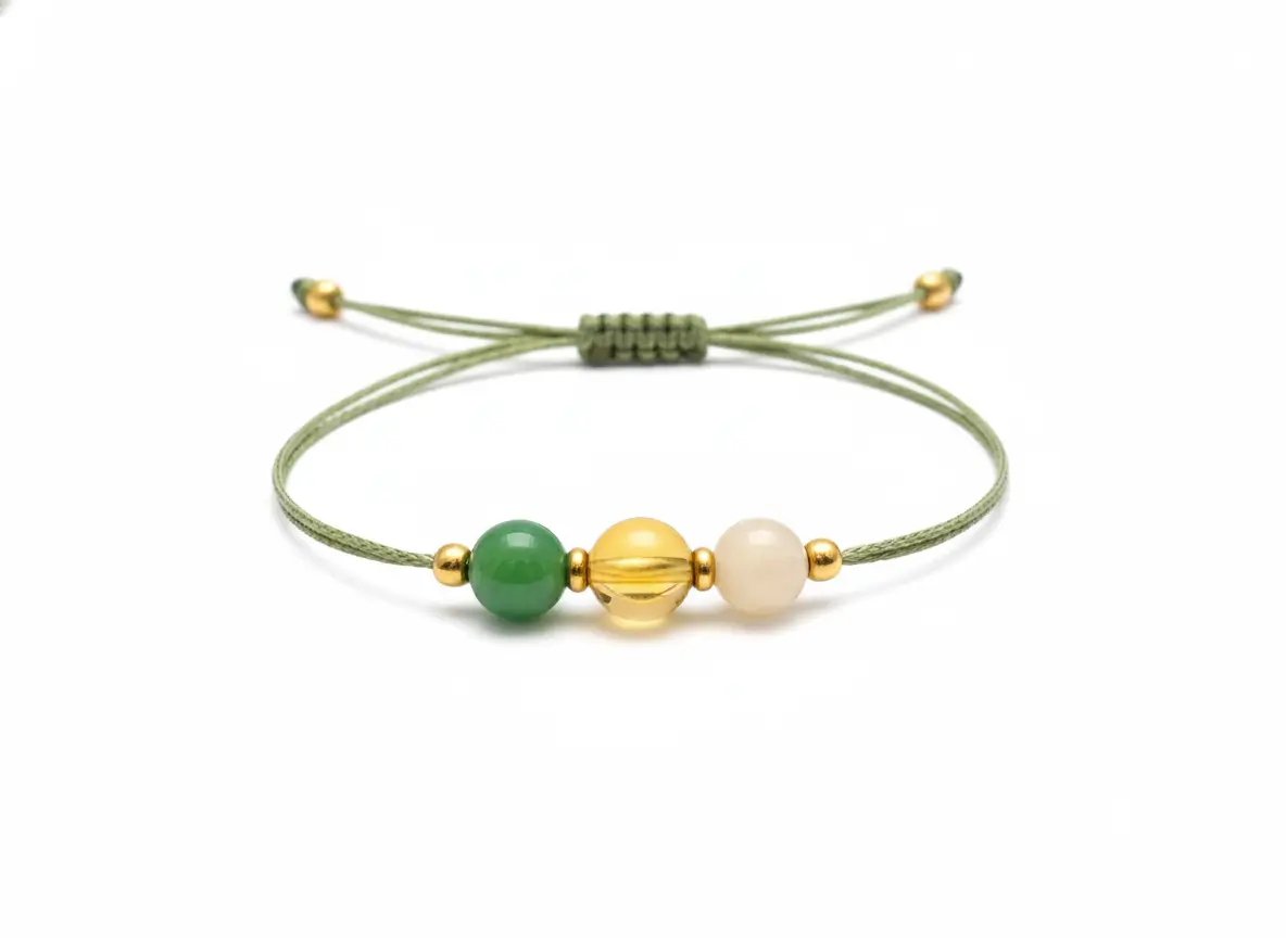 Bolluk, bereket ve maddi akış enerjisini destekleyen Yeşim–Sitirin–Pirit üçlüsüne sahip minimal bileklik. Yeni fırsatları, finansal dengeyi ve para frekansını güçlendirmek isteyenler için tasarlandı.